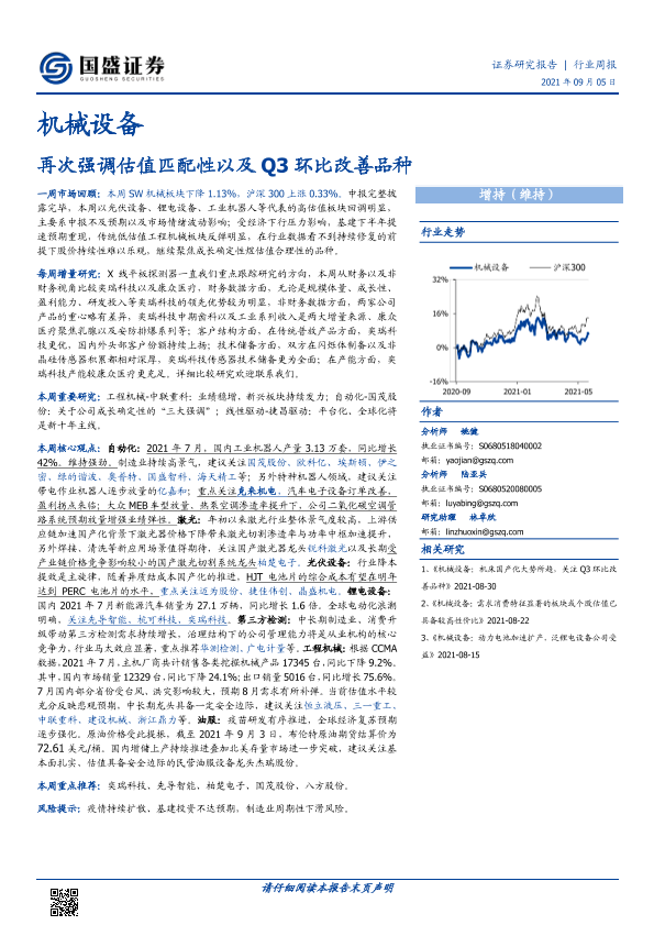 【国盛证券】【20210905】20210905-国盛证券-机械设备行业周报:再次强调估值匹配性以及Q3环比改善品种-12页