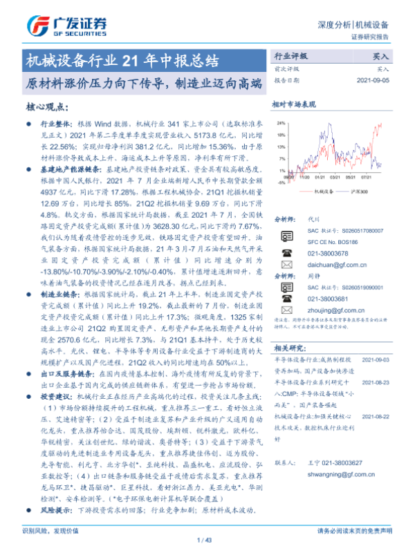 【广发证券】【20210905】机械设备行业21年中报总结:原材料涨价压力向下传导,制造业迈向高端-43页