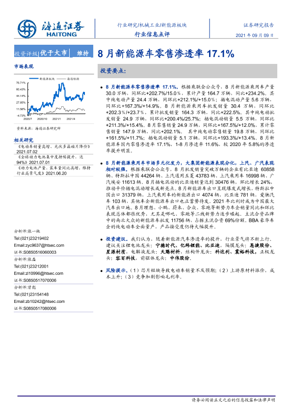 【海通证券】【20210909】20210909-海通证券-新能源板块行业信息点评:8月新能源车零售渗透率17.1%-4页