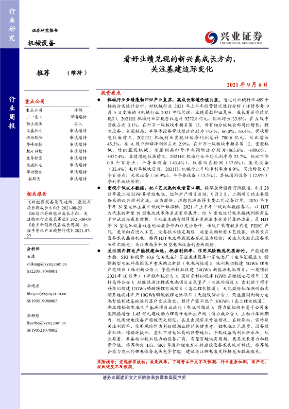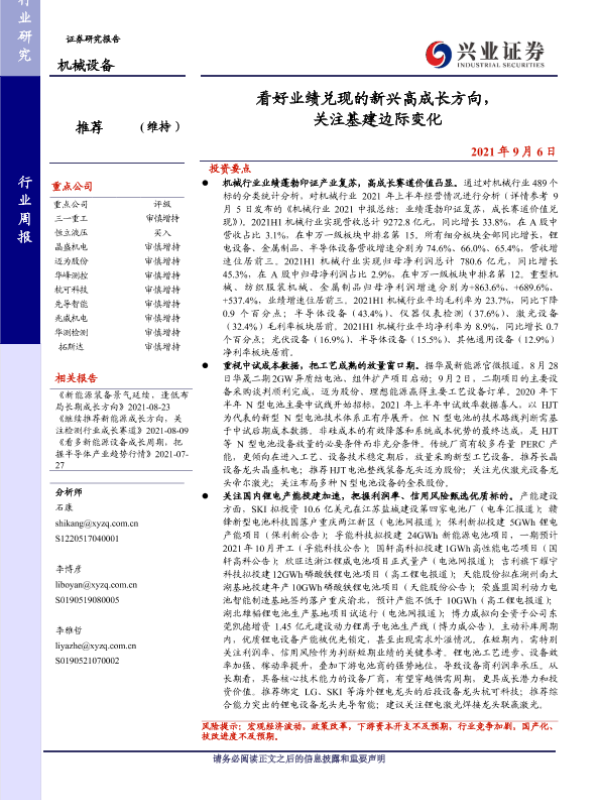 【兴业证券】【20210906】看好业绩兑现的新兴高成长方向,关注基建边际变化-30页