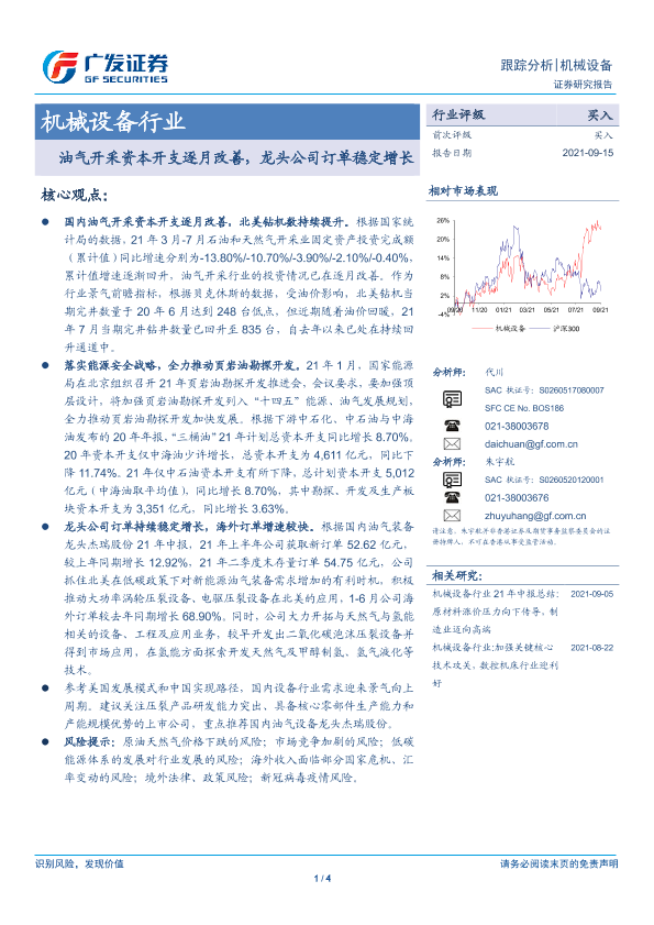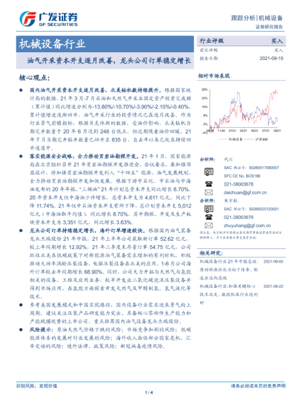【广发证券】【20210915】机械设备行业:油气开采资本开支逐月改善,龙头公司订单稳定增长-4页