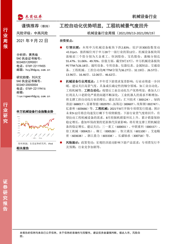 【东莞证券】【20210922】20210922-东莞证券-机械设备行业周报:工控自动化优势明显,工程机械景气度回升-13页