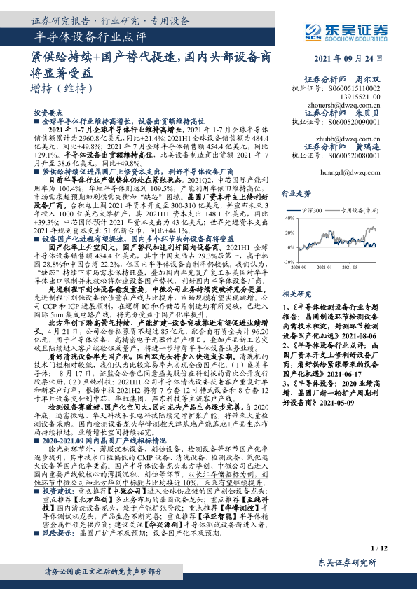 【东吴证券】【20210924】半导体设备行业点评:紧供给持续+国产替代提速,国内头部设备商将显著受益-12页