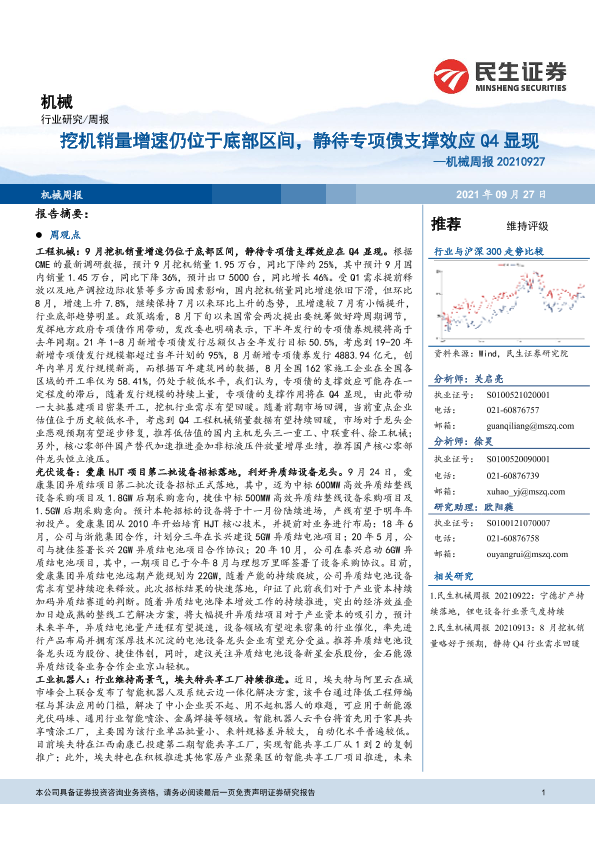 【民生证券】【20210927】20210927-民生证券-机械周报:挖机销量增速仍位于底部区间,静待专项债支撑效应Q4显现-17页