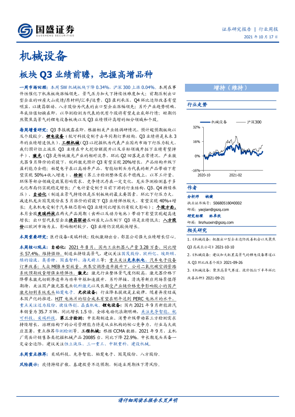 【国盛证券】【20211017】20211017-国盛证券-机械设备行业周报:板块Q3业绩前瞻,把握高增品种-12页