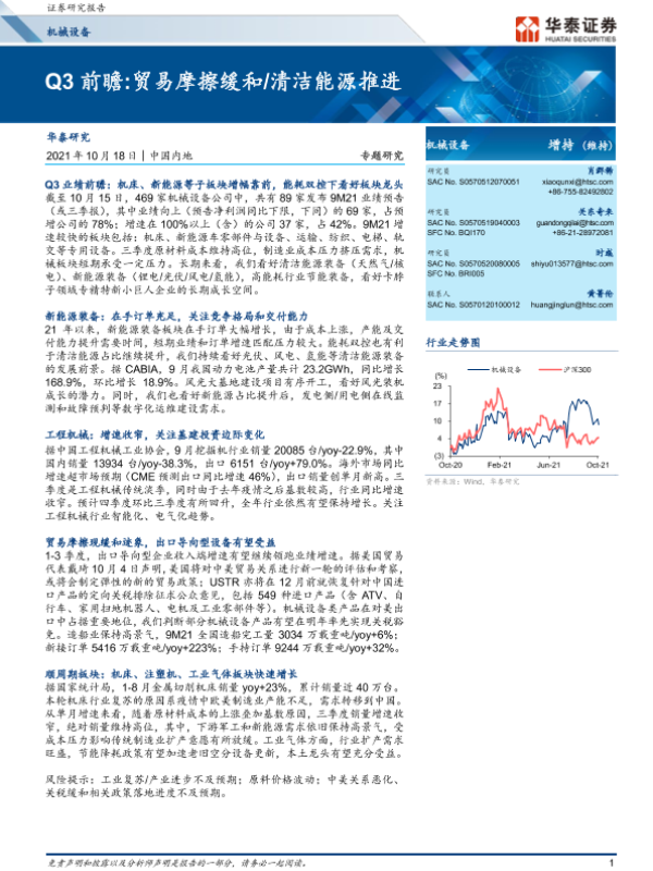 【华泰证券】【20211018】20211018-华泰证券-机械设备专题研究:Q3前瞻:贸易摩擦缓和 清洁能源推进-6页
