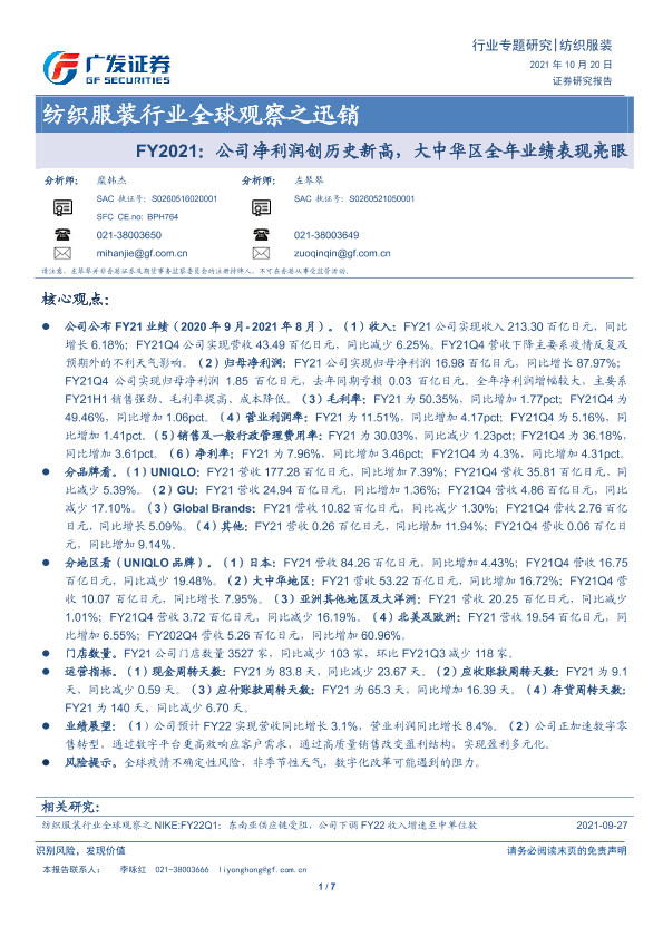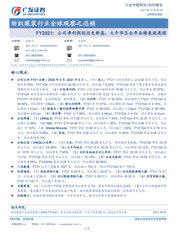【广发证券】【20211020】纺织服装行业全球观察之迅销-7页