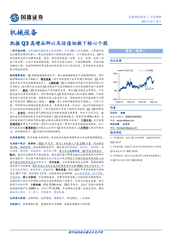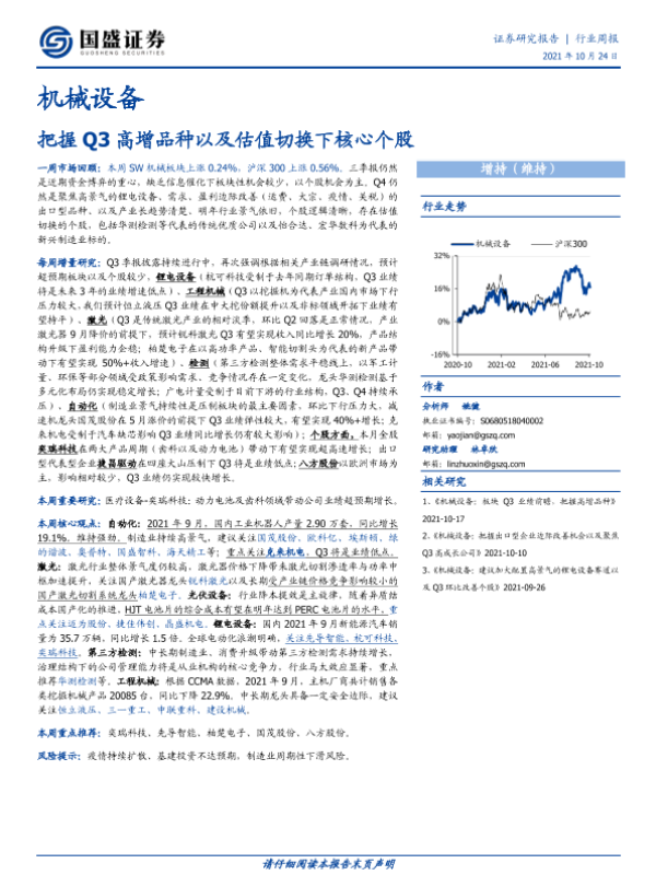 【国盛证券】【20211024】20211024-国盛证券-机械设备行业周报:把握Q3高增品种以及估值切换下核心个股-11页