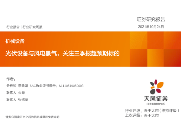 【天风证券】【20211024】机械设备:光伏设备与风电景气,关注三季报超预期标的-32页