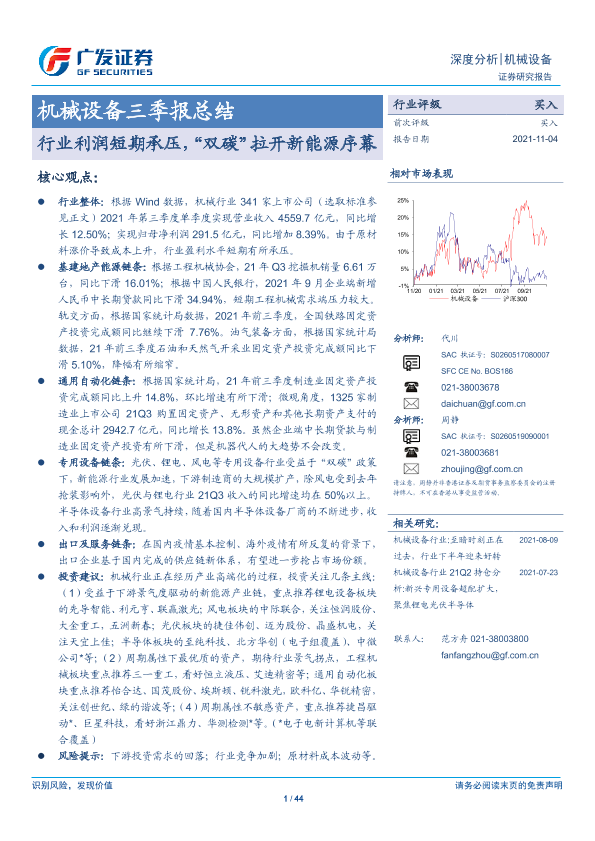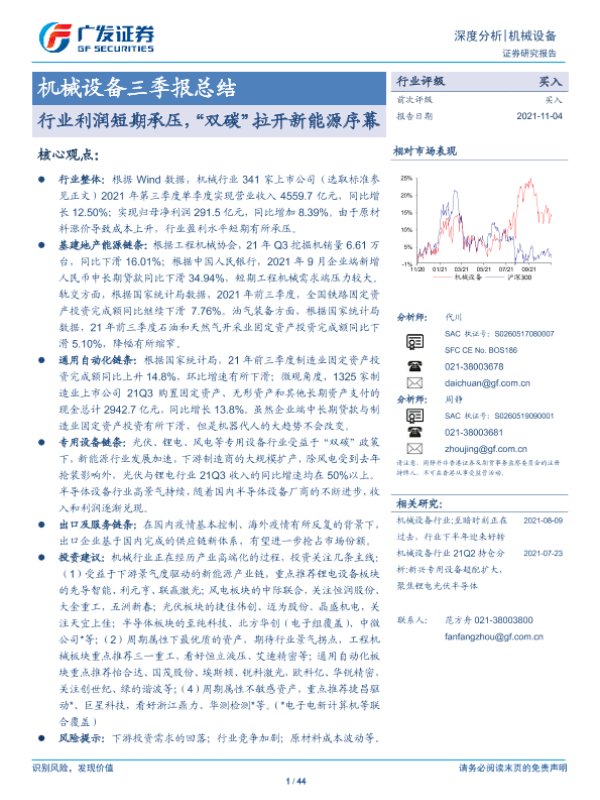 【广发证券】【20211104】20211104-广发证券-机械设备三季报总结:行业利润短期承压,“双碳”拉开新能源序幕-44页