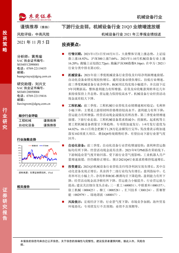 【东莞证券】【20211105】机械设备行业2021年三季报业绩综述:下游行业走弱,机械设备行业21Q3业绩增速放缓-16页