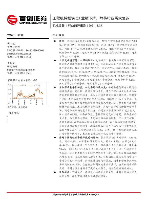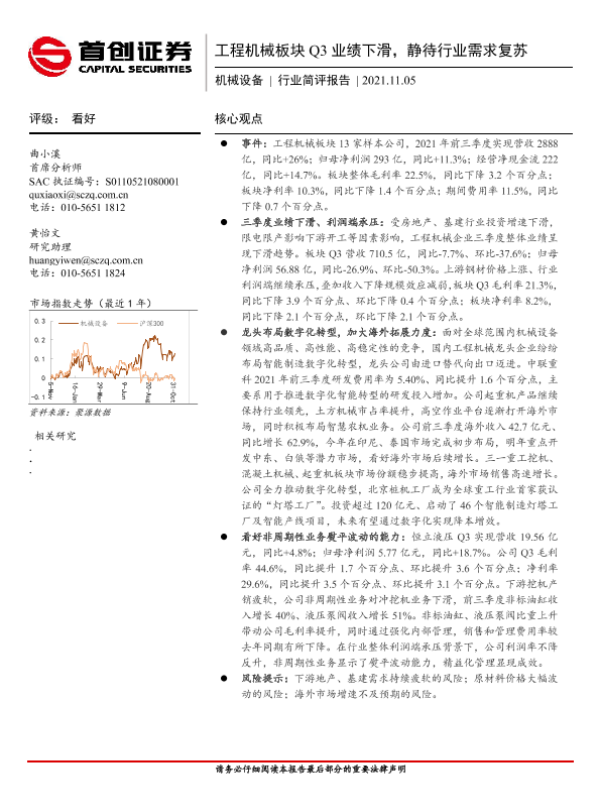 【首创证券】【20211105】工程机械板块Q3业绩下滑,静待行业需求复苏-4页