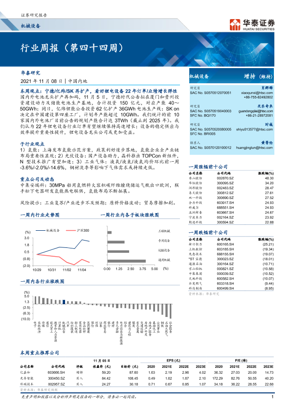 【华泰证券】【20211108】20211108-华泰证券-机械设备行业周报(第四十四周)-18页