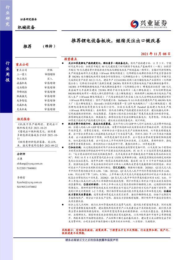 【兴业证券】【20211108】推荐锂电设备板块,继续关注出口链改善-34页