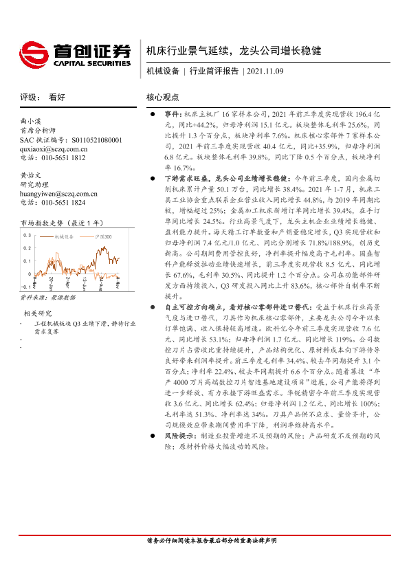【首创证券】【20211109】20211109-首创证券-机械设备行业简评报告:机床行业景气延续,龙头公司增长稳健-4页