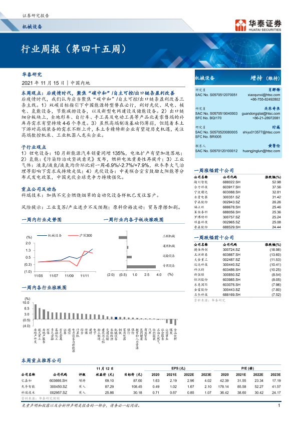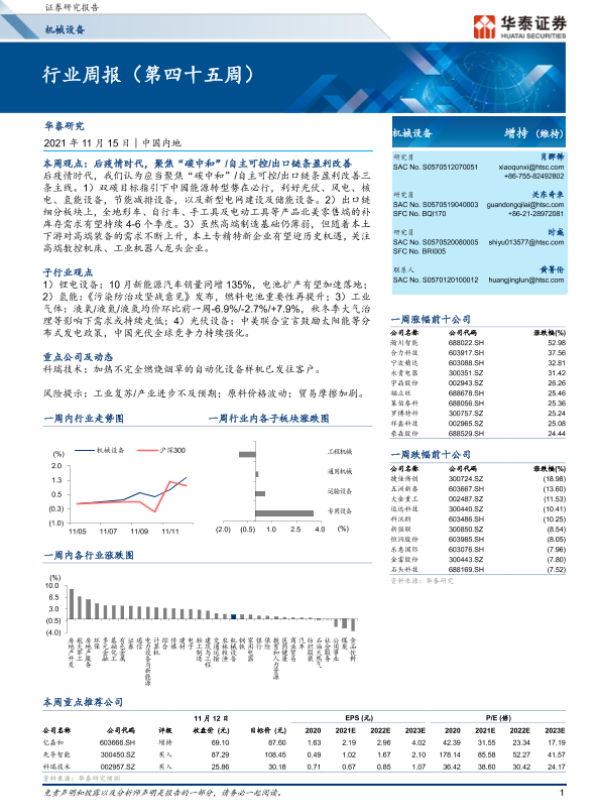 【华泰证券】【20211115】20211115-华泰证券-机械设备行业周报(第四十五周)-18页