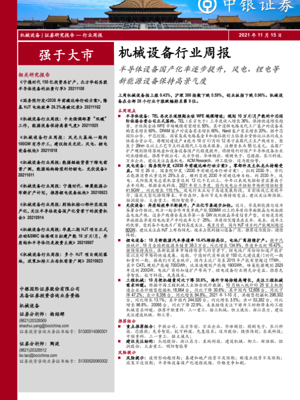 【中银证券】【20211115】20211115-中银证券-机械设备行业周报:半导体设备国产化率逐步提升,风电、锂电等新能源设备保持高景气度-17页