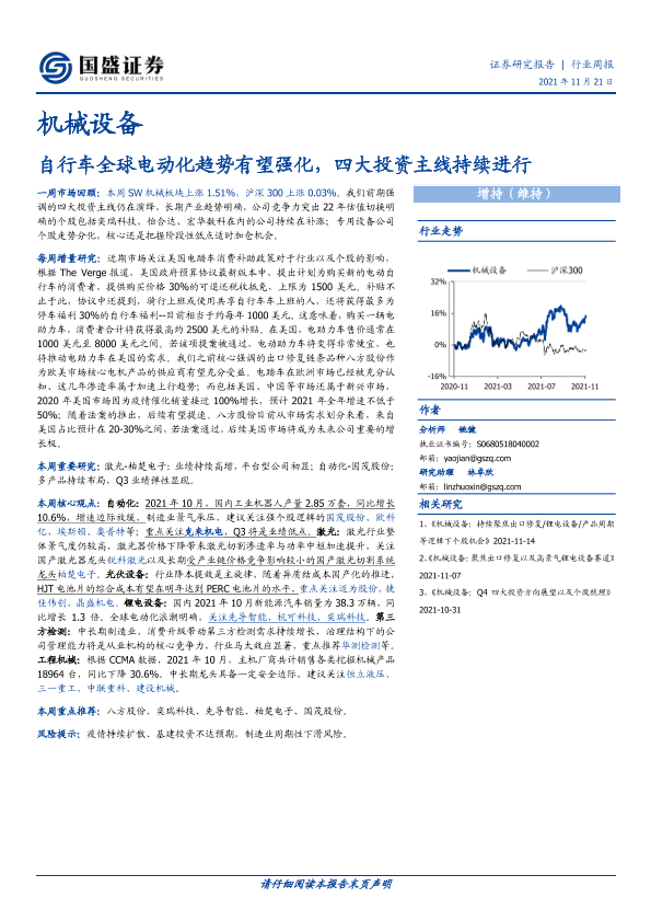 【国盛证券】【20211121】机械设备行业周报:自行车全球电动化趋势有望强化,四大投资主线持续进行-11页
