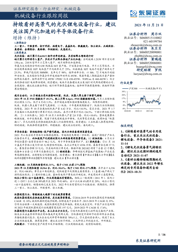 【东吴证券】【20211121】20211121-东吴证券-机械设备行业跟踪周报:持续看好高景气的光伏锂电设备行业,建议关注国产化加速的半导体设备行业-16页