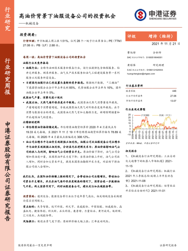 【申港证券】【20211121】20211121-申港证券-机械设备行业研究周报:高油价背景下油服设备公司的投资机会-17页