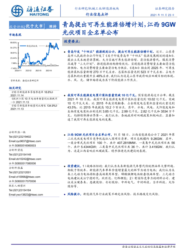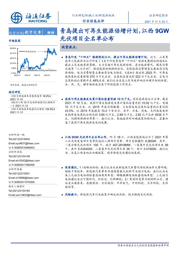 【海通证券】【20211123】20211123-海通证券-能源板块行业信息点评:青岛提出可再生能源倍增计划,江西9GW光伏项目全名单公布-2页