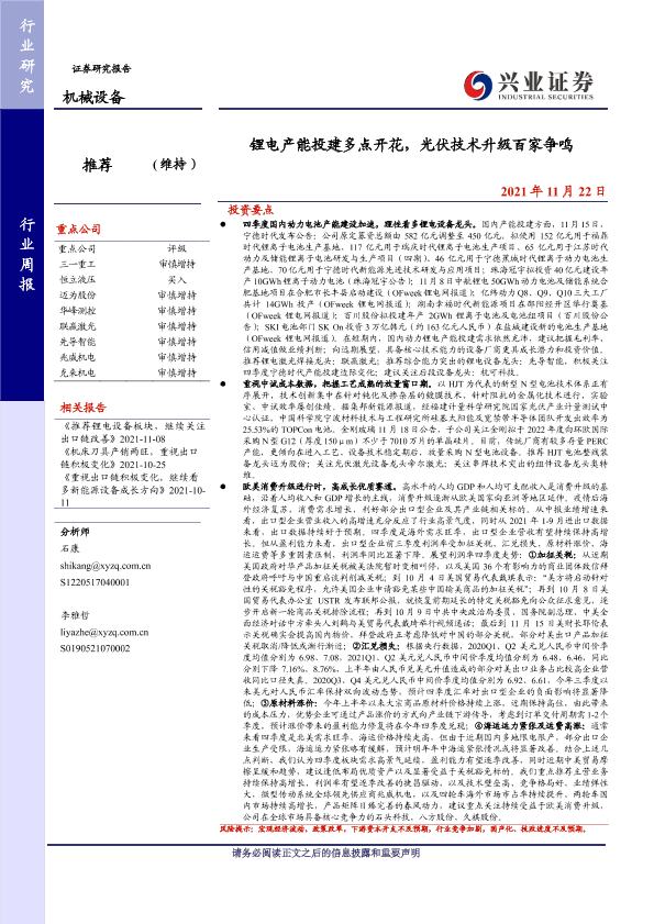光伏技术 出口企业 机械设备 消费升级 锂电设备