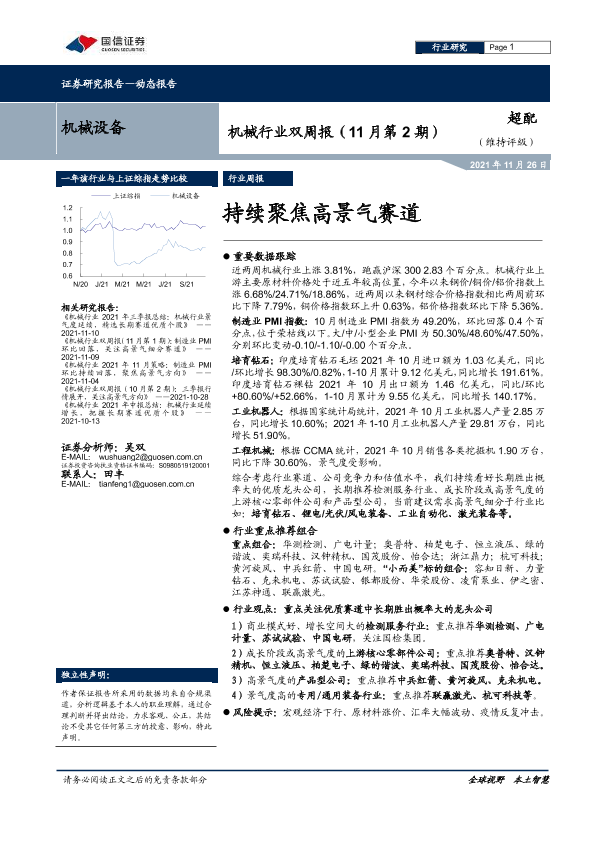 【国信证券】【20211126】机械行业双周报(11月第2期):持续聚焦高景气赛道-21页