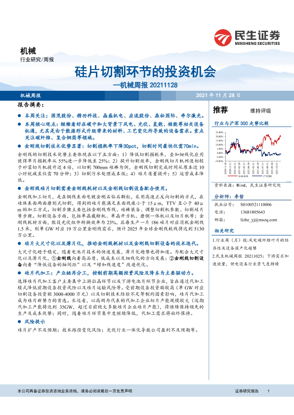 【民生证券】【20211128】20211128-民生证券-机械周报:硅片切割环节的投资机会-18页