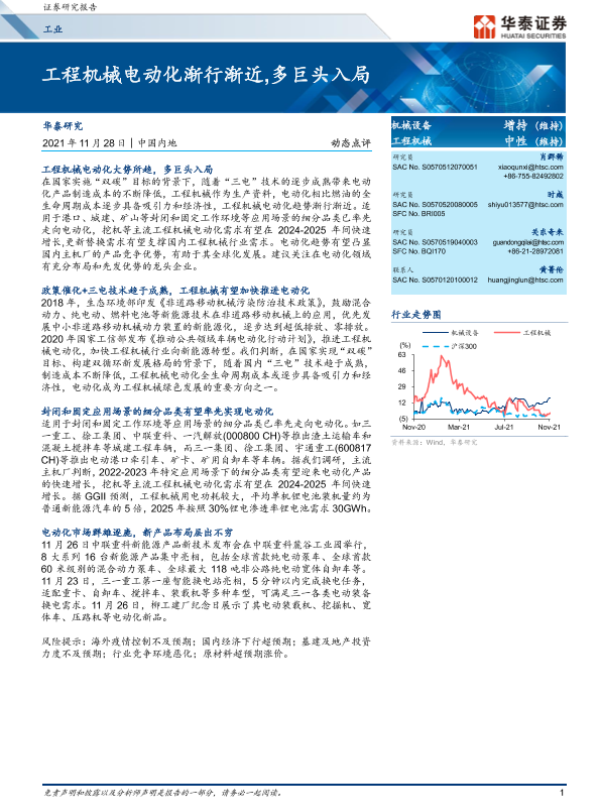 【华泰证券】【20211128】机械设备:工程机械电动化渐行渐近,多巨头入局-5页