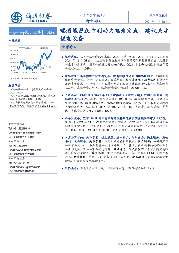 【海通证券】【20211128】20211128-海通证券-机械工业行业周报:瑞浦能源获吉利动力电池定点,建议关注锂电设备-9页