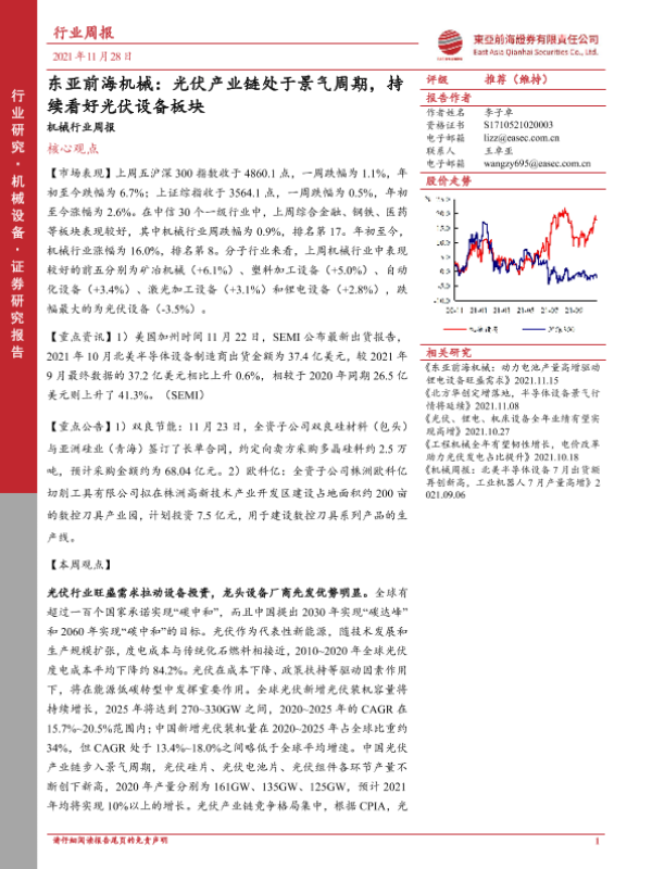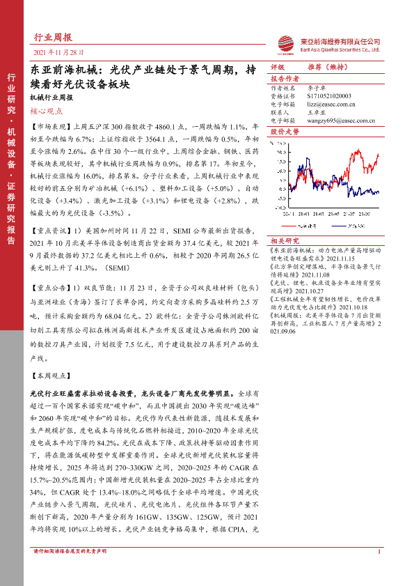 【东亚前海证券】【20211128】东亚前海机械行业周报:光伏产业链处于景气周期,持续看好光伏设备板块-20页