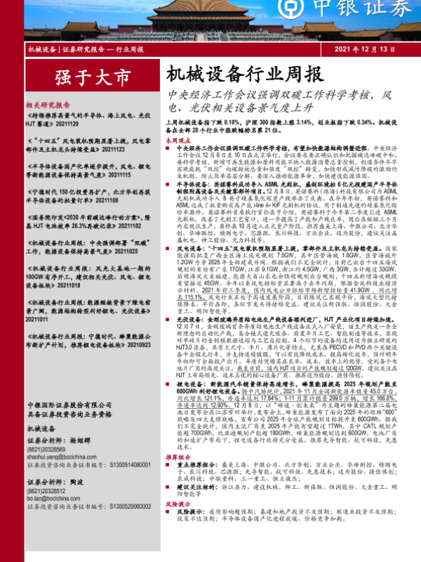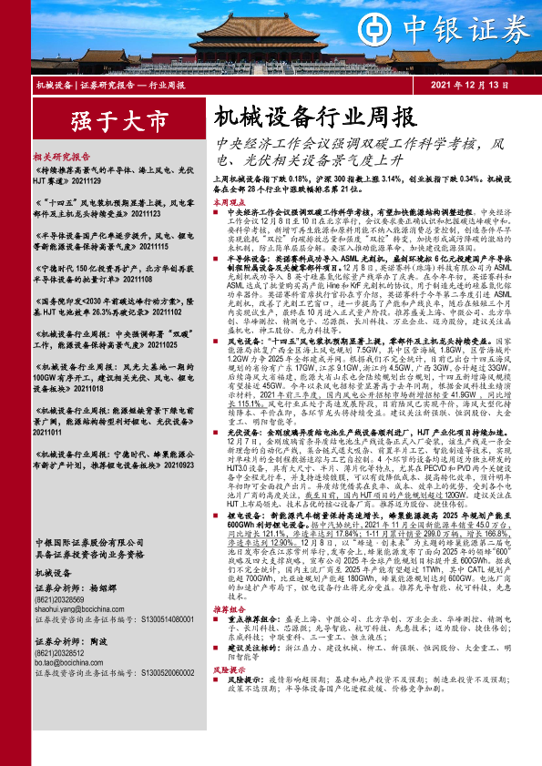 【中银证券】【20211213】20211213-中银证券-机械设备行业周报:中央经济工作会议强调双碳工作科学考核,风电、光伏相关设备景气度上升-17页