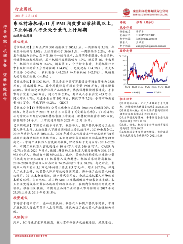 【东亚前海证券】【20211214】20211214-东亚前海证券-机械行业周报:11月PMI指数重回荣枯线以上,工业机器人行业处于景气上行周期-18页