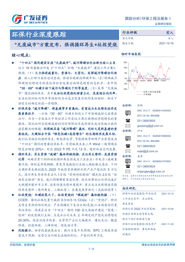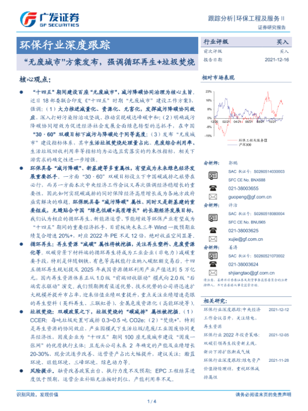 【广发证券】【20211216】20211216-广发证券-环保行业深度跟踪:“无废城市”方案发布,强调循环再生+垃圾焚烧-4页