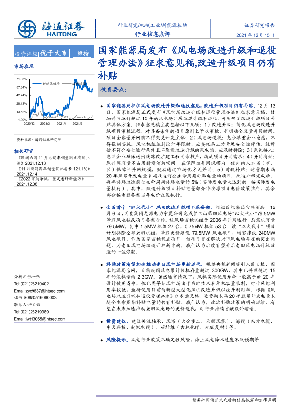 【海通证券】【20211215】国家能源局发布《风电场改造升级和退役管理办法》征求意见稿,改造升级项目仍有补贴-2页