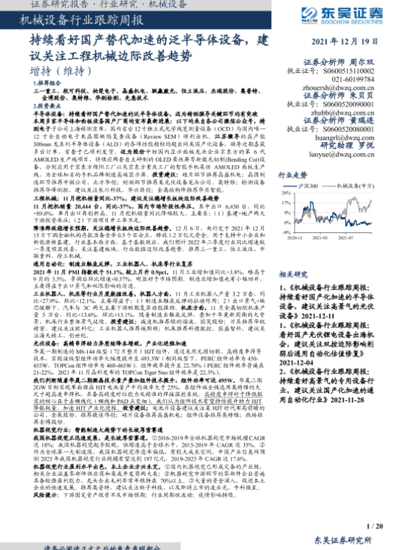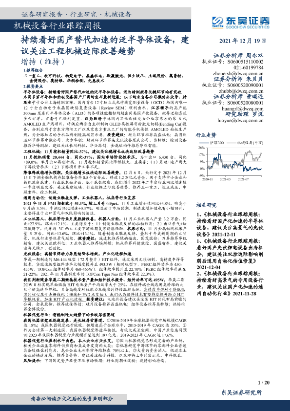 【东吴证券】【20211219】20211219-东吴证券-机械设备行业跟踪周报:持续看好国产替代加速的泛半导体设备,建议关注工程机械边际改善趋势-20页