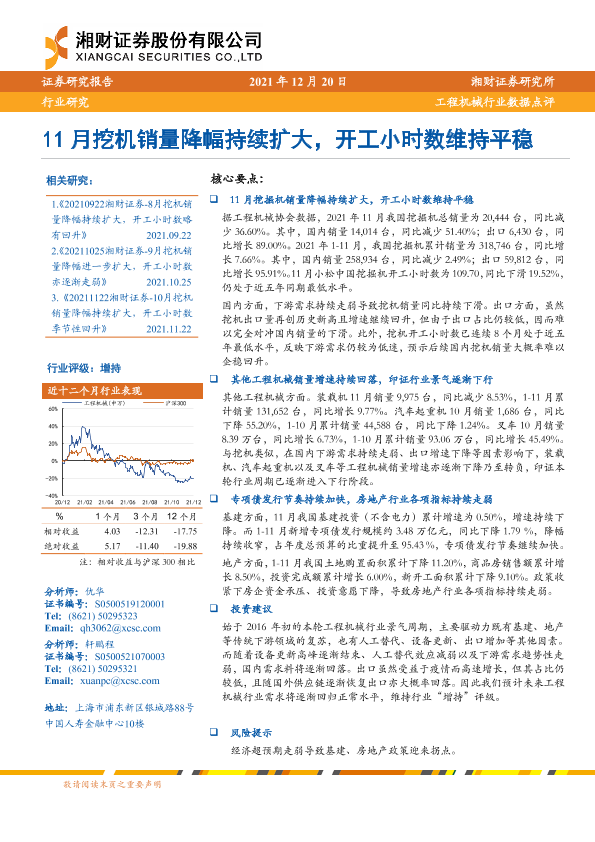 【湘财证券】【20211220】11月挖机销量降幅持续扩大,开工小时数维持平稳-8页