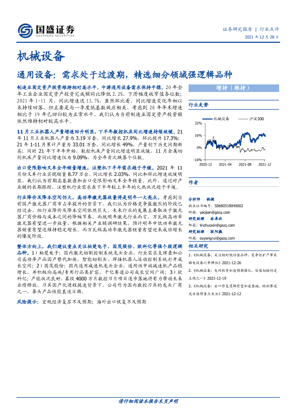 【国盛证券】【20211228】20211228-国盛证券-机械设备行业点评:通用设备:需求处于过渡期,精选细分领域强逻辑品种-7页