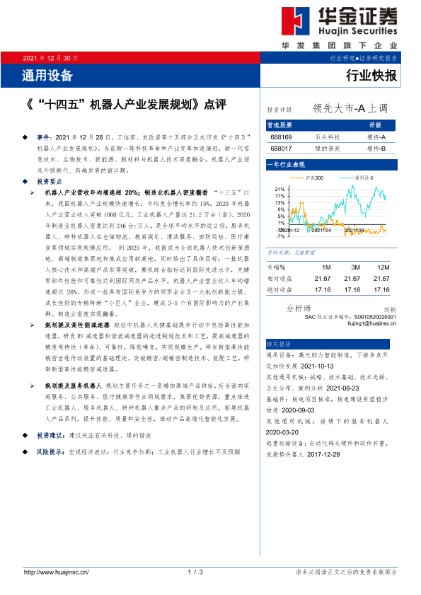 【华金证券】【20211230】《“十四五”机器人产业发展规划》点评-3页