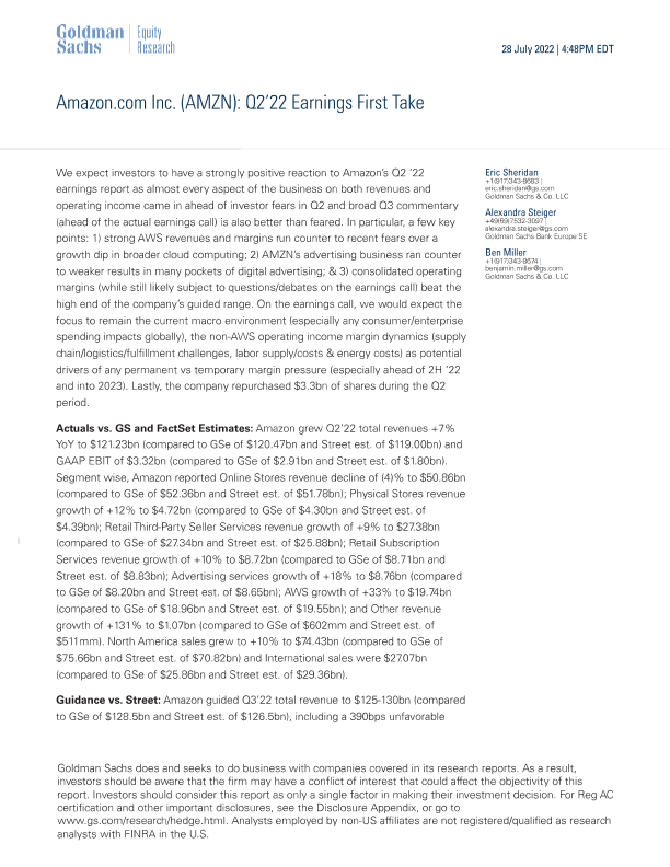 【Goldman Sachs】【20220728】Amazon.com Inc. (AMZN)_ Q2'22 Earnings First Take-6页