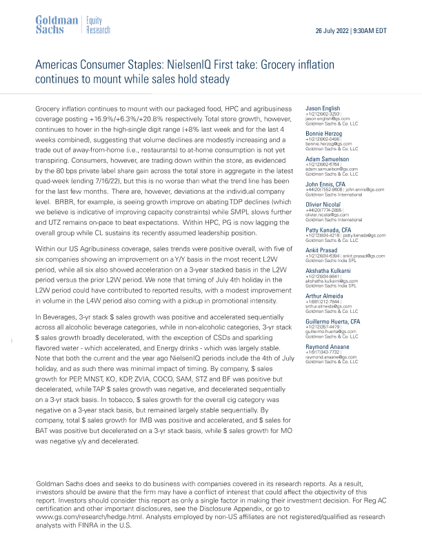 【Goldman Sachs】【20220726】First take Grocery inflation continues to mount while sales hold steady-17页