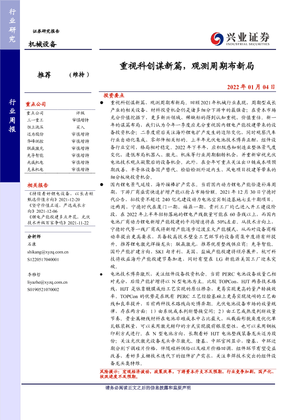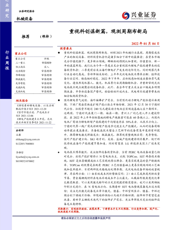 【兴业证券】【20220104】20220104-兴业证券-机械设备行业周报:重视科创谋新篇,观测周期布新局-25页