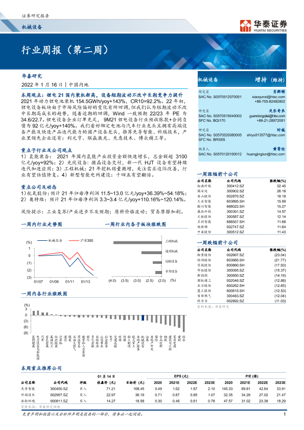 【华泰证券】【20220116】20220116-华泰证券-机械设备行业周报(第二周)-22页