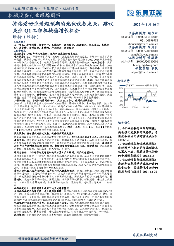 【东吴证券】【20220116】20220116-东吴证券-机械设备行业跟踪周报:持续看好业绩超预期的光伏设备龙头,建议关注Q1工程机械稳增长机会-20页
