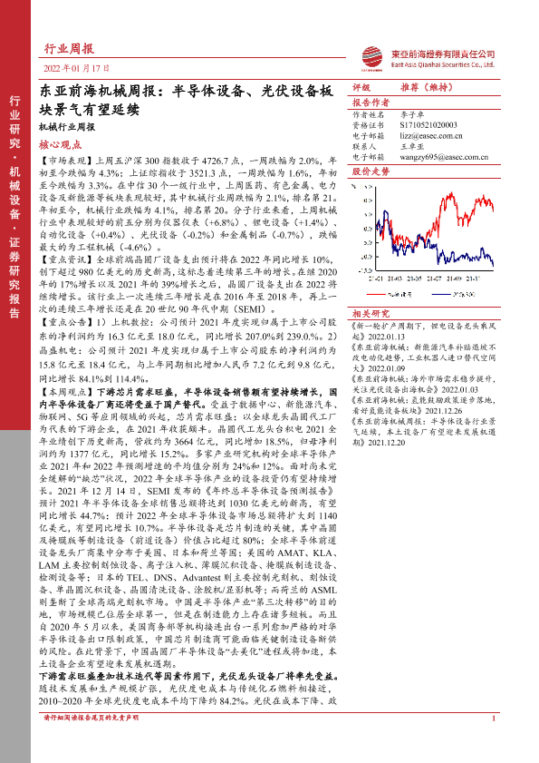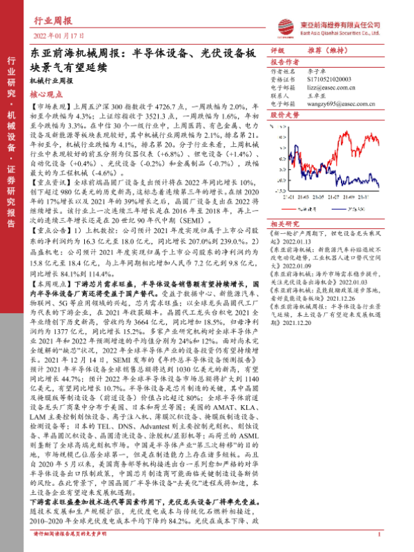 【东亚前海证券】【20220117】东亚前海机械周报:半导体设备、光伏设备板块景气有望延续-21页