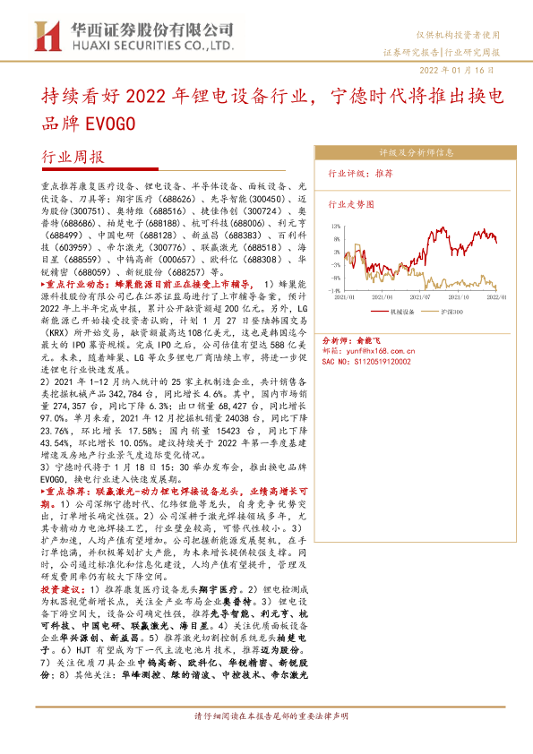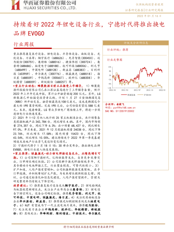 【华西证券】【20220116】20220116-华西证券-机械设备行业周报:持续看好2022年锂电设备行业,宁德时代将推出换电品牌EVOGO-21页