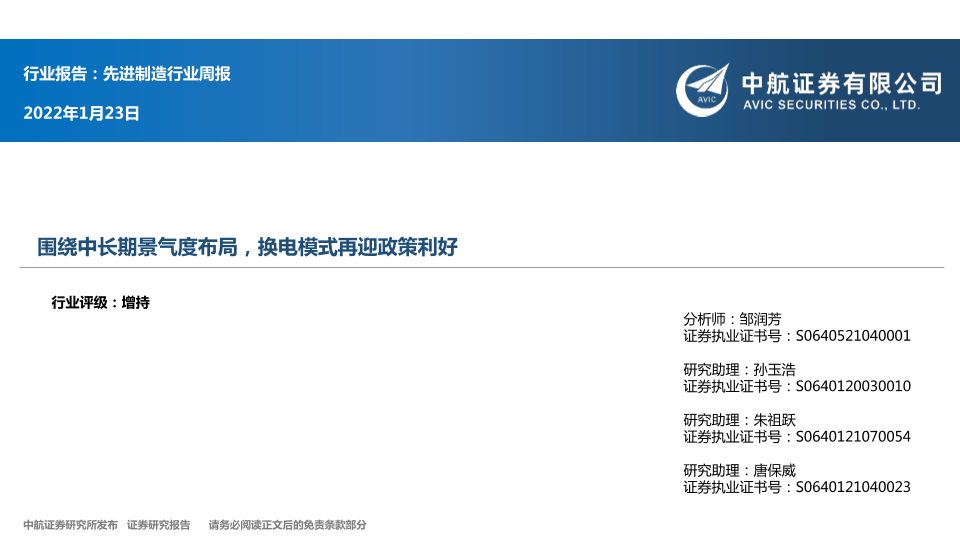 【中航证券】【20220123】20220123-中航证券-先进制造行业周报:围绕中长期景气度布局,换电模式再迎政策利好-16页