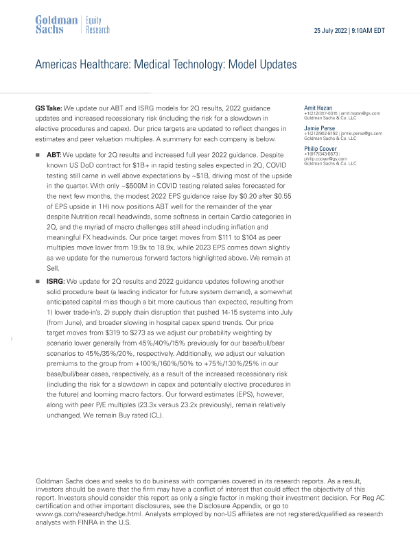【Goldman Sachs】【20220725】Americas Healthcare Medical Technology Model Updates-7页
