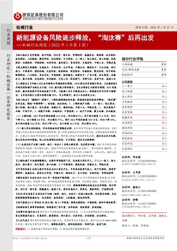 【浙商证券】【20220123】机械行业周报(2022年1月第3周):新能源设备风险逐步释放,“淘汰赛”后再出发-27页