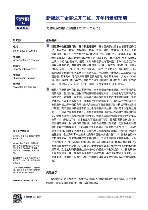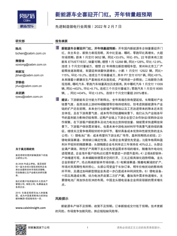 【莫尼塔研究】【20220207】先进制造锂电行业周报:新能源车企喜迎开门红,开年销量超预期-11页